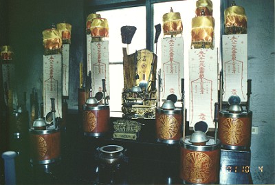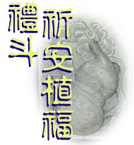 涼傘:古謂天圓地方。涼傘狀呈圓形,取之象徵蒼天,一切萬物莫不覆育其下。 禮斗:座呈方形。取之象徵大地,一切萬物莫不載生其上。涼傘覆下,米斗載上,象徵一大周天,不但具足三百六十度之數,且如一年 四季春夏秋冬、十二個月、二十四節氣、三十六禽星、二十八星宿、八卦、九宮……無不含識其內,乃盈昃度數之定義也。 斗籤:為聖神之寶座。上書聖諱,象徵聖神已臨軒其上。另書有天地日月、斗宿經緯、南北斗星辰躔度及祈安植福主科文詞,旨在祈求上蒼賜福降祥。 白米:五穀乃人之主食。斗中放置五穀,乃象徵延續性命,生生不息之意義也。 青龍七星劍:左青龍鎮居東方,七星劍為鎮守之寶。寶劍光下,鬼妖喪膽,精怪亡形。 白虎戥點紋:右白虎鎮居西方,法度箴規戥為鎮守之寶。寶戥垂下,上合天心,下符黎庶。 朱雀朝儀剪:前朱雀鎮居南方,朝儀剪為鎮守之寶。寶剪開導,魔 無干犯,鬼無妖精。 玄武大法尺:後玄武鎮居北方,大法尺為鎮守之寶。法尺敕下,部領天邱,神靈威鎮。 斗宮煥彩鏡:本鏡功可返照本命元辰所放光芒,照耀於祈安植福善信之本命元辰,俾使人人身體健康,精神清爽,個個事業願遂,家庭美滿。 |