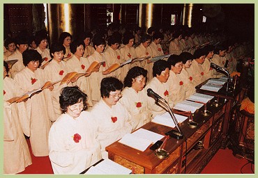 本宮誦經會經生,經過李教授之身教及愛心諄諄教導,悉心調教之後,學識增進、氣質優雅、進退有序、品行端正、熱心服務。不但能獨當一面,擔任本宮酬神、祈禳消災等濟世工作,並熱心公益、敦親睦鄰,進而淨化村里的世道人心。這種由個人提升家庭、村里的人倫品質,對於整個社會教化,確有很大貢獻。 此外,本宮誦經會經常舉辦國內自強活動及大陸寺廟進香讚經旅遊,藉以調劑身心,增廣見聞及培養團隊精神。本宮於重大節慶或貴賓蒞宮訪問時所舉辦的聯歡會,均由誦經會負責策劃與節目的提供,經生們精彩的歌舞表演水準。不僅展現了經生們的表演才華,同時亦向與會貴賓致上最高的歡迎之意。成為本宮誦經會另一大特色。 |
