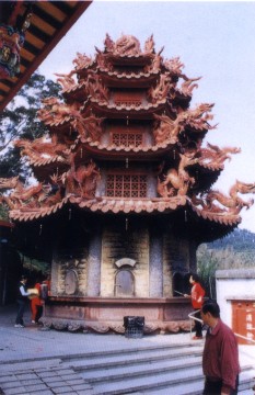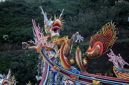 此外,精心設計的金亭,象徵九五至尊,造型採九宮八卦形式,配合八卦方位,開設休、生、傷、杜、景、死、驚、開八門,依奇門遁甲順應節氣轉換八門方向,使參拜信者取得吉祥方向,他廟難得一見。