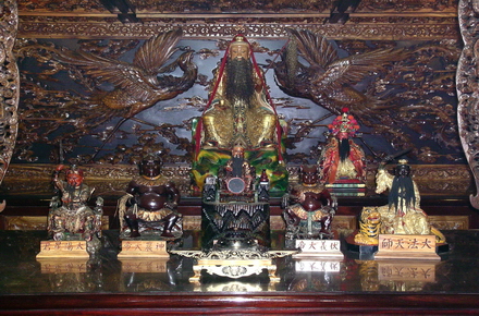 東華帝君 東華帝君統御萬類,即上古真仙東王公、木公,據道書所載,當上古之時,道氣凝寂、湛體無為之際,欲啟迪玄功化生萬物,先以東華至真之氣化生木公。木公生於碧海之上,以生陽和之氣,坐鎮東方,因此元始天尊立天下四極時,即授東王公為東極青華大帝。